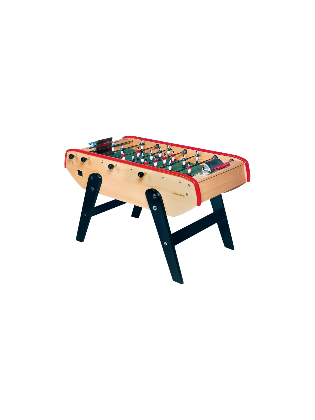 Le baby-foot Stadium constitue une version allégée du B90, avec un poids réduit d’environ 20 kg. Dépourvu de monnayeur, il est proposé dans une unique finition : un meuble en bois mélaminé ton hêtre naturel, associé à des pieds en hêtre massif laqués noirs, et aux combinaisons de couleurs emblématiques des modèles B60 et B90 qui reflètent l’identité Bonzini.
