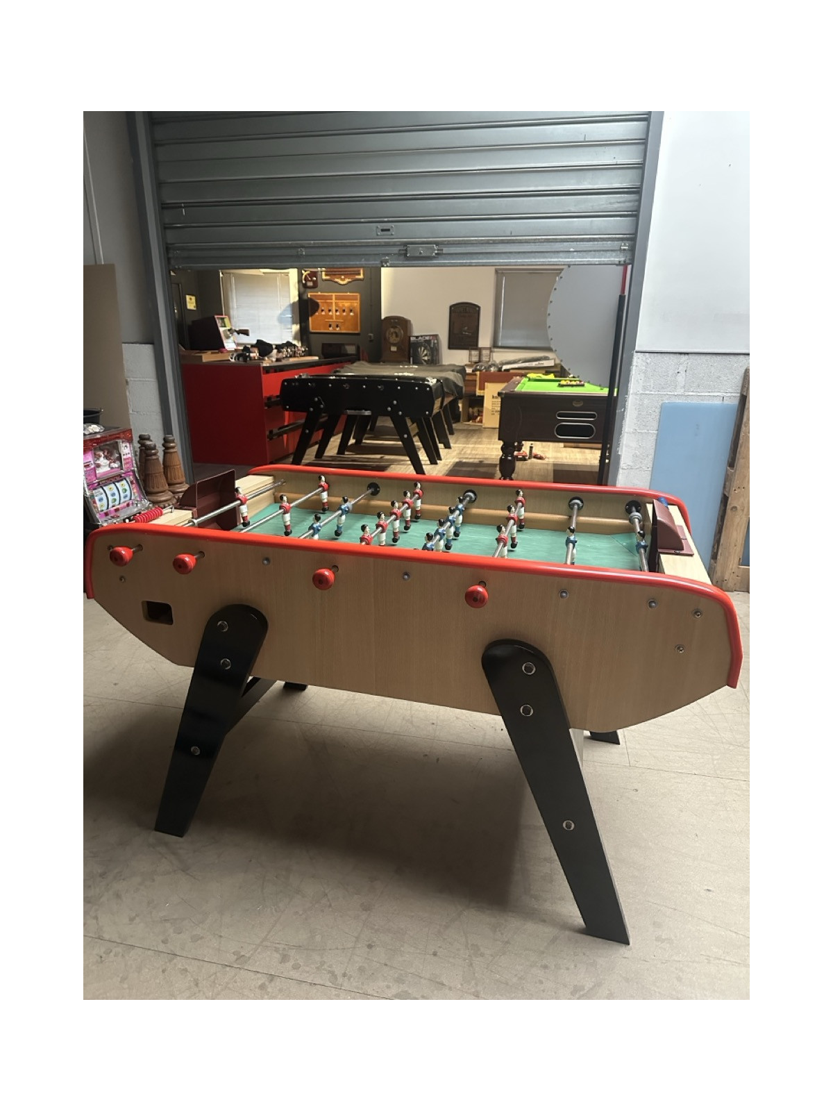 Le baby-foot Stadium constitue une version allégée du B90, avec un poids réduit d’environ 20 kg. Dépourvu de monnayeur, il est proposé dans une unique finition : un meuble en bois mélaminé ton hêtre naturel, associé à des pieds en hêtre massif laqués noirs, et aux combinaisons de couleurs emblématiques des modèles B60 et B90 qui reflètent l’identité Bonzini.