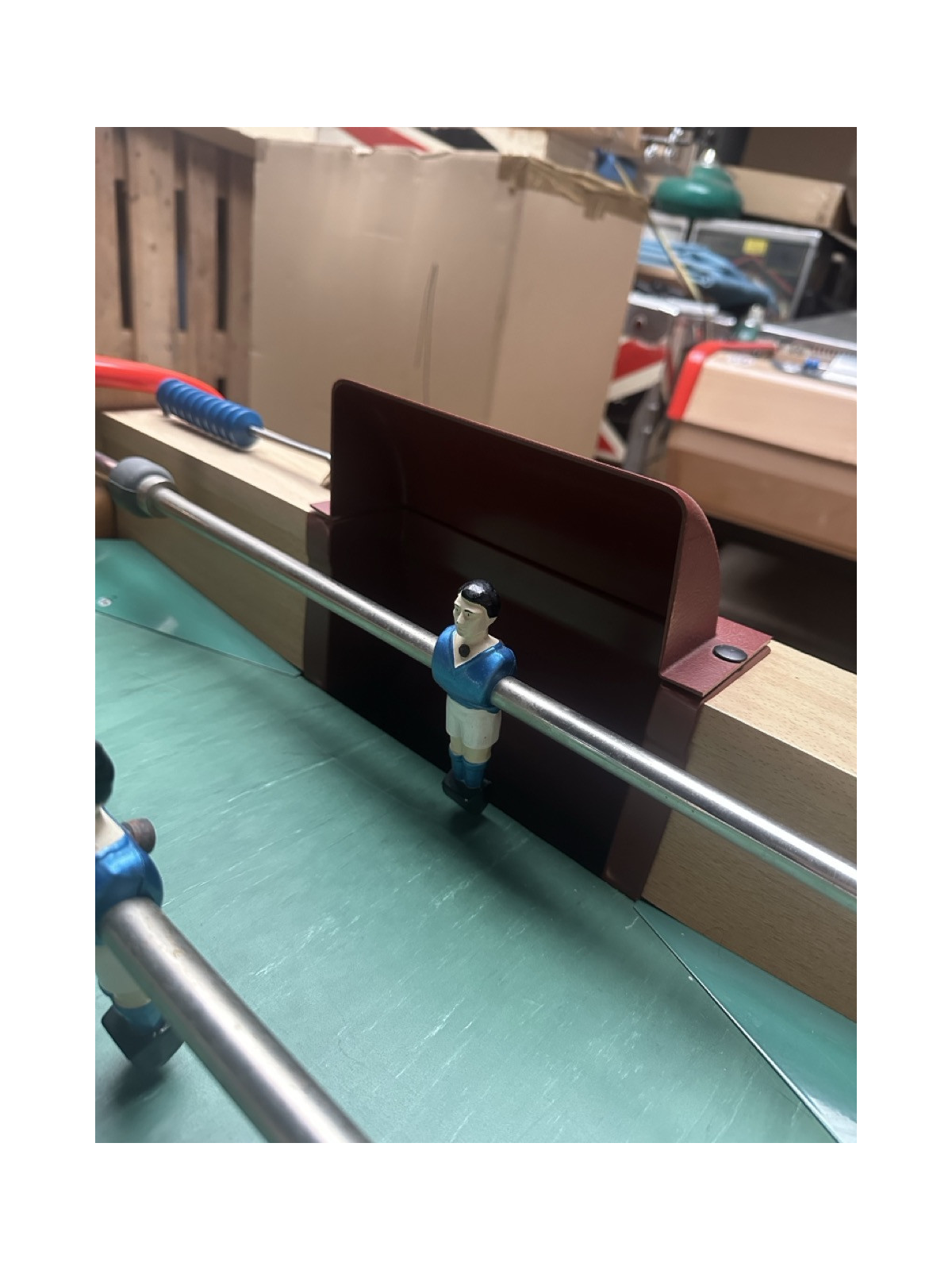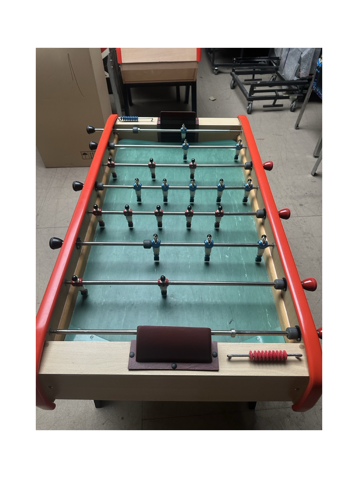 Joueurs: aluminium, fixés sur les barres par vis haute résistance, décorés main, peinture au four (Bleu et rouge), compteur de point assortis