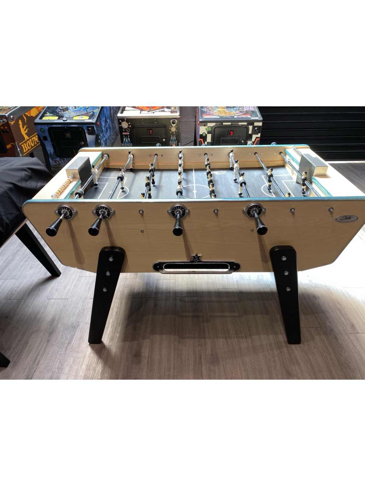 Le baby-foot Stella STAR est un modèle emblématique de la marque, conçu pour offrir un excellent compromis entre performance, robustesse et esthétique. Fabriqué en France, il reprend les codes qui font la réputation de Stella : joueurs en aluminium, surface de jeu permettant les lobs, finitions soignées et grande stabilité. Adapté aux particuliers comme aux espaces de loisirs, le Stella Star assure une expérience de jeu fluide et précise, tout en s’intégrant facilement dans tous types d’intérieurs grâce à son design élégant et intemporel.