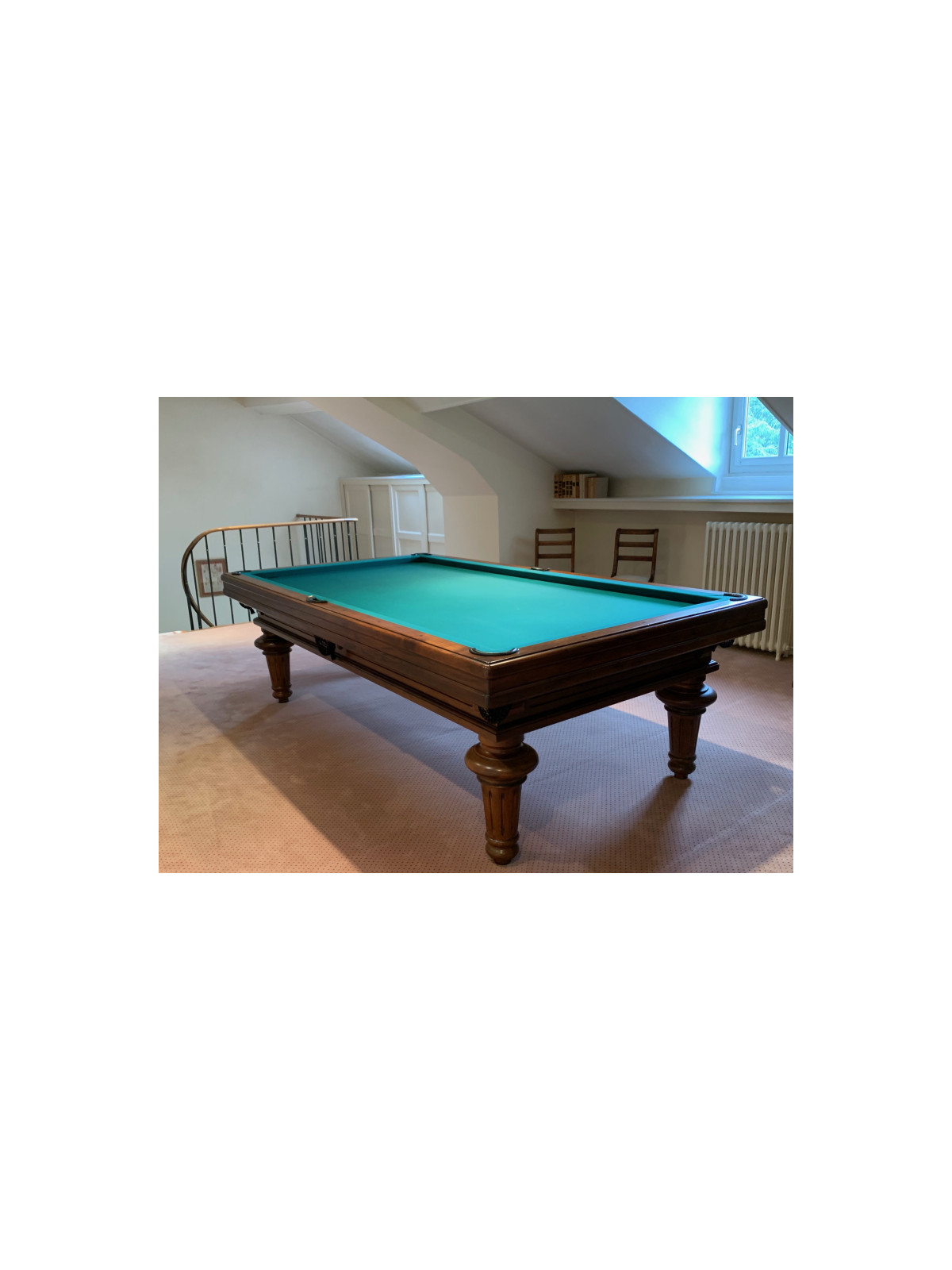 Billard d’occasion en très bon état général, soigneusement entretenu, prêt à être installé et utilisé immédiatement après pose du drap neuf.