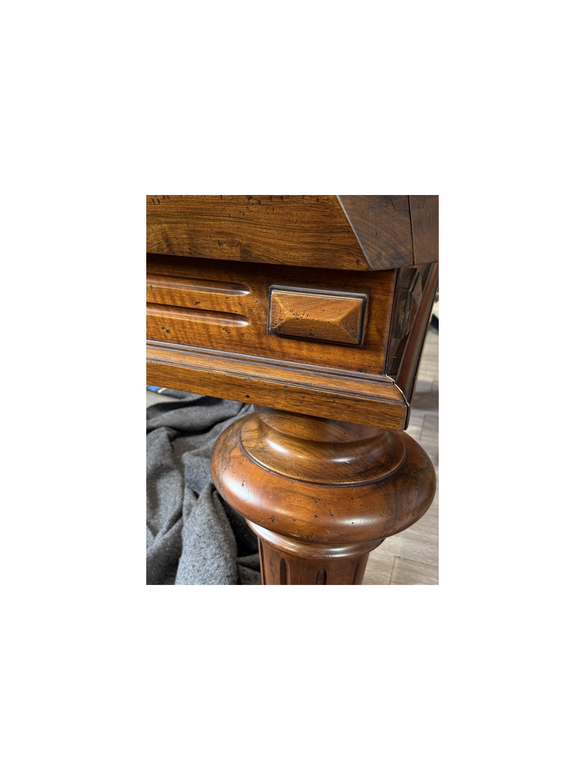 Le billard Louis XVI Chevillotte d’occasion est un billard de prestige alliant tradition, polyvalence et équipements haut de gamme. Réalisé en noyer massif avec finition patine antiquaire, il est doté d’une ardoise trois parties de 30 mm, d’un chauffage thermostatique et d’une configuration US mixte / française avec mini-bandes occultant les poches. Le drap sera posé à neuf, au choix.