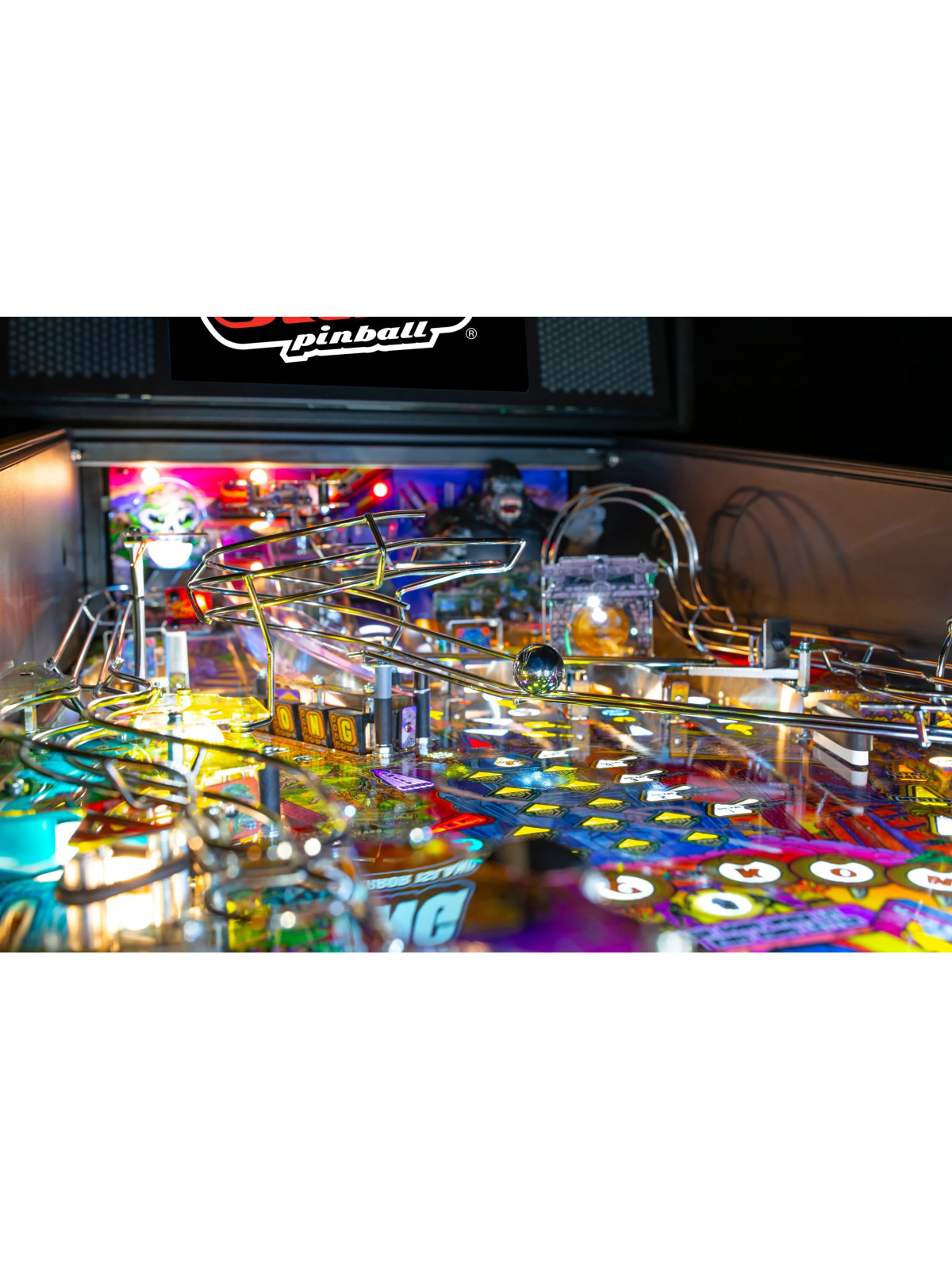 Le King Kong: Myth of Terror Island de Stern Pinball est un flipper de dernière génération conçu pour offrir une expérience de jeu immersive, dynamique et techniquement avancée. Inspiré de l’univers mythique de King Kong, il plonge le joueur au cœur d’une aventure spectaculaire mêlant jungle primitive, temples anciens et paysages urbains dévastés. Grâce à une conception mécanique soignée et à un design visuel hautement qualitatif, ce modèle s’adresse aussi bien aux collectionneurs qu’aux exploitants professionnels recherchant un flipper moderne et performant.