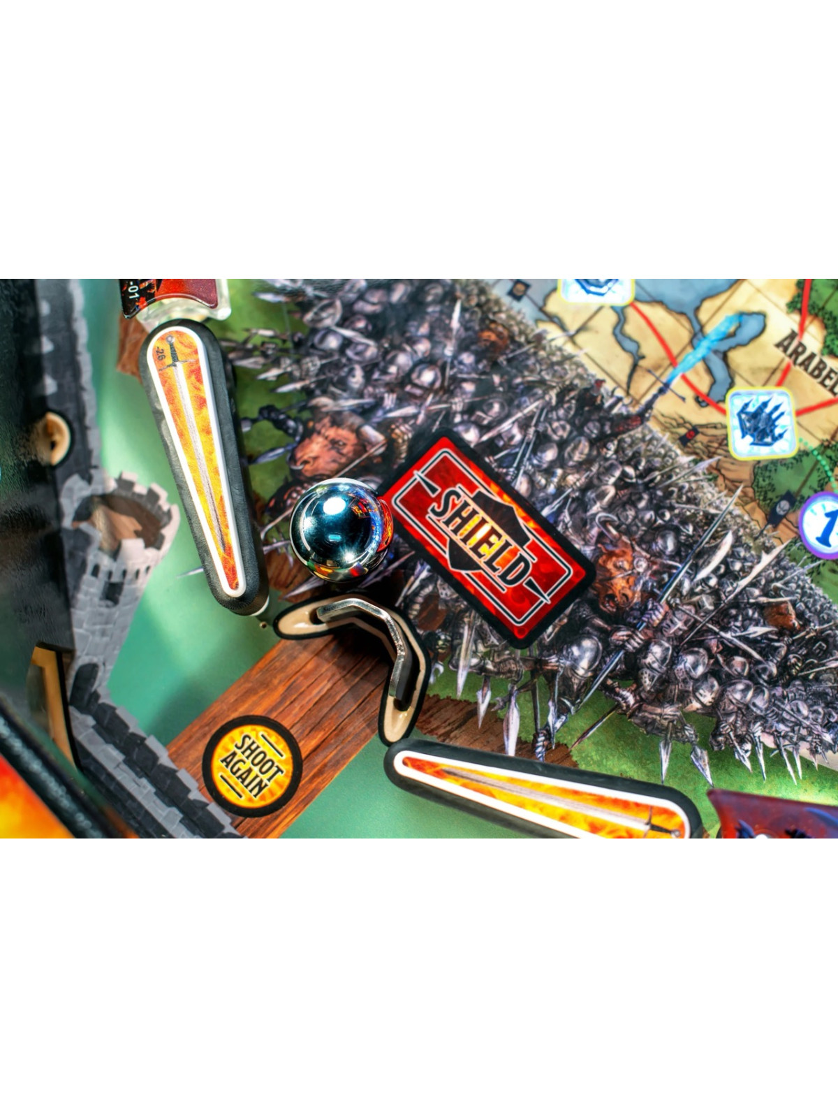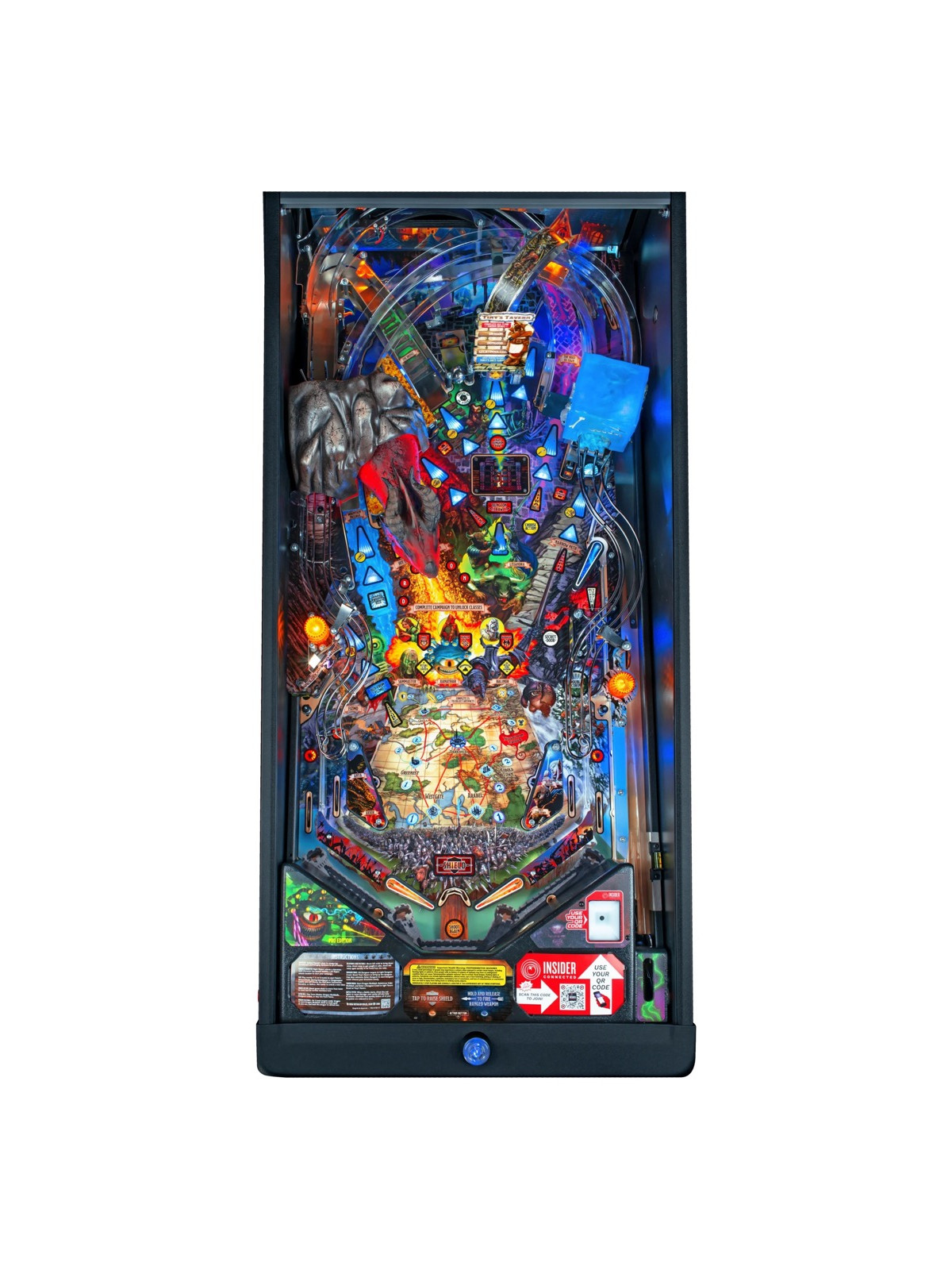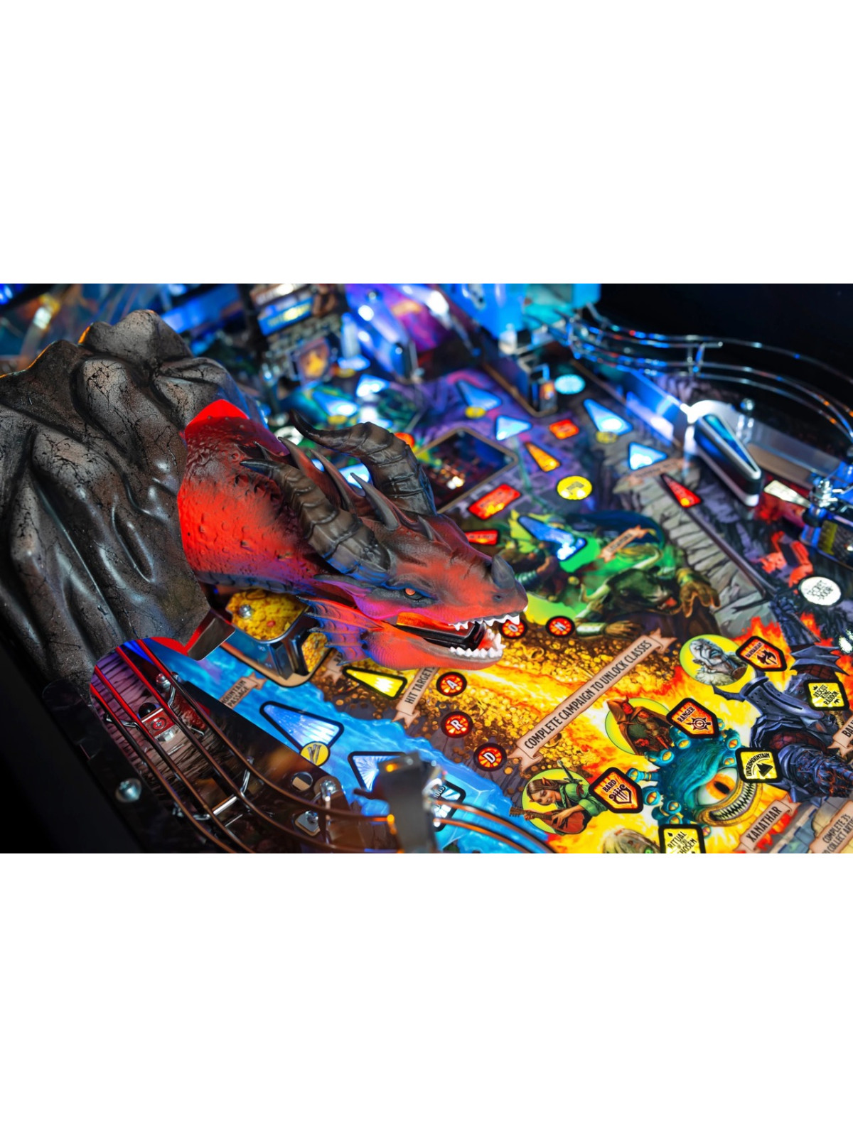 Le plateau de jeu se distingue par une grande richesse mécanique : rampes complexes, cibles multiples, mécanismes interactifs, modes de quêtes et multiballs scénarisés. Une figurine animée de dragon, capable de mouvements précis et d’effets lumineux, constitue l’élément central du dispositif, renforçant l’immersion à chaque séquence de jeu. Les versions Pro, Premium et Limited Edition proposent chacune des niveaux de finition spécifiques, incluant illustrations exclusives, décors supplémentaires et détails techniques renforcés.