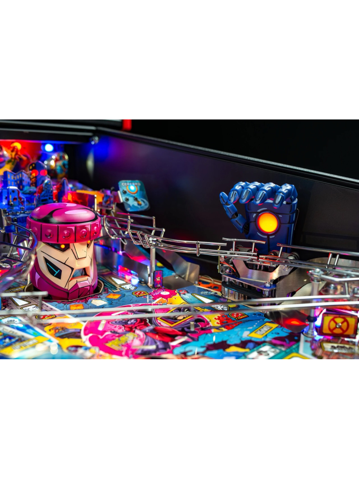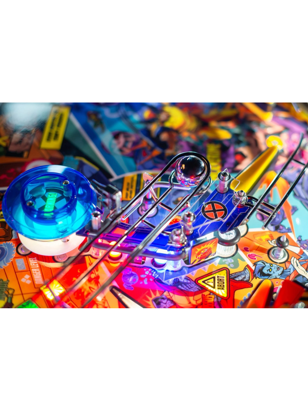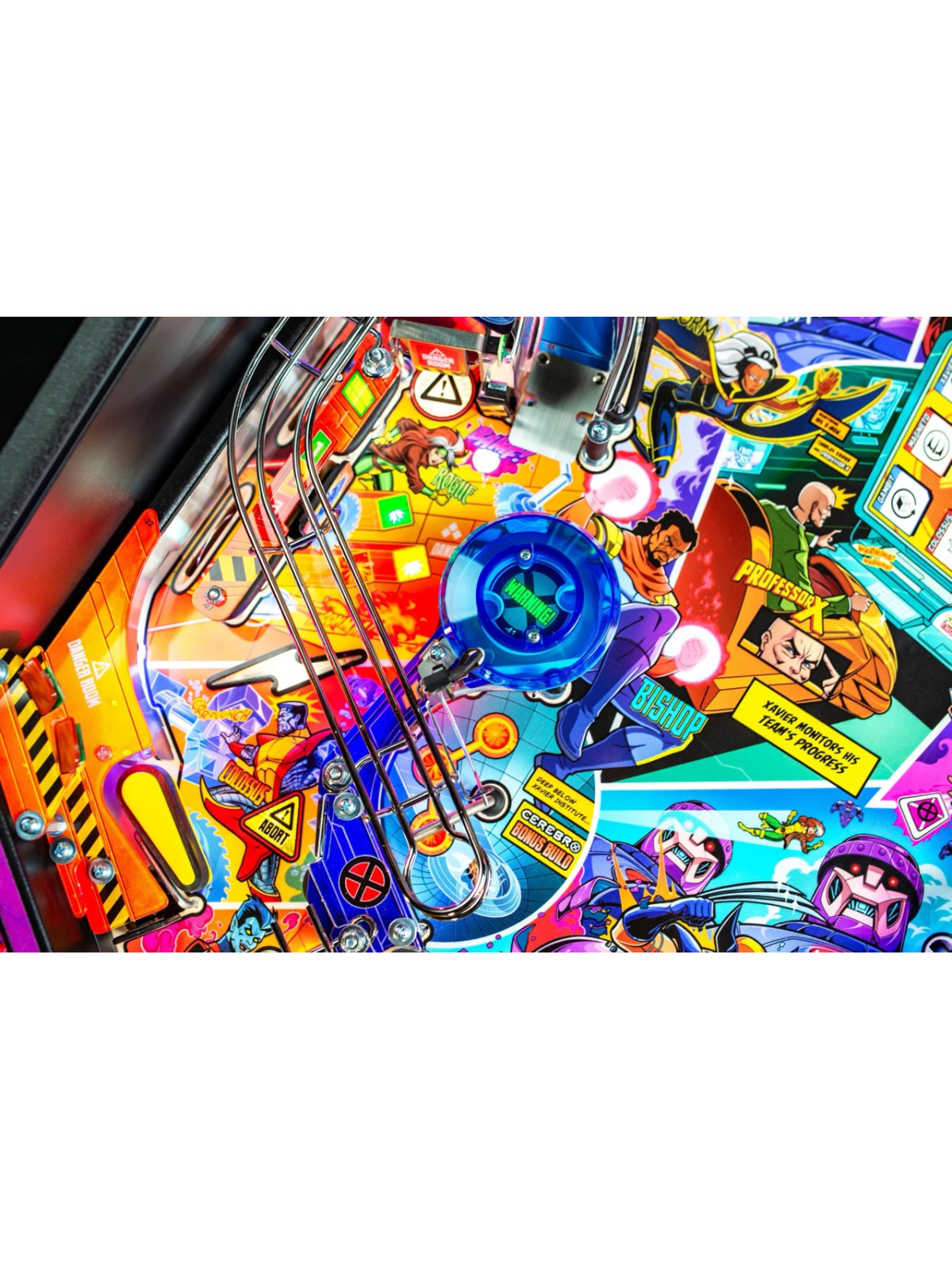 Le plateau propose un agencement complexe comprenant rampes croisées, cibles multiples, mini-zones de jeu thématiques et mécaniques interactives inspirées de lieux mythiques comme la Danger Room ou le laboratoire de Beast. Dans les versions Premium et Limited Edition, une Sentinelle animée intervient directement sur le plateau, renforçant l’effet spectaculaire et la profondeur de jeu. Les différents modes de missions et les multiballs scénarisés assurent une rejouabilité élevée.