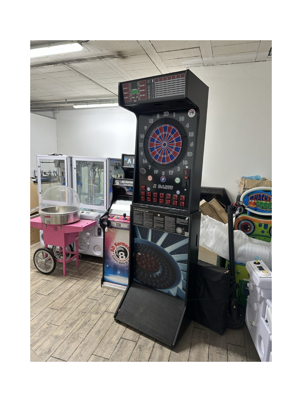 La borne de fléchettes électroniques X-Dart Black est conçue pour offrir une expérience de jeu conviviale, précise et sécurisée. Son design sobre et moderne, avec une finition noire, s’intègre facilement dans tous types d’environnements, qu’il s’agisse d’un espace privé, d’un bar, d’une salle de jeux ou d’un local associatif.