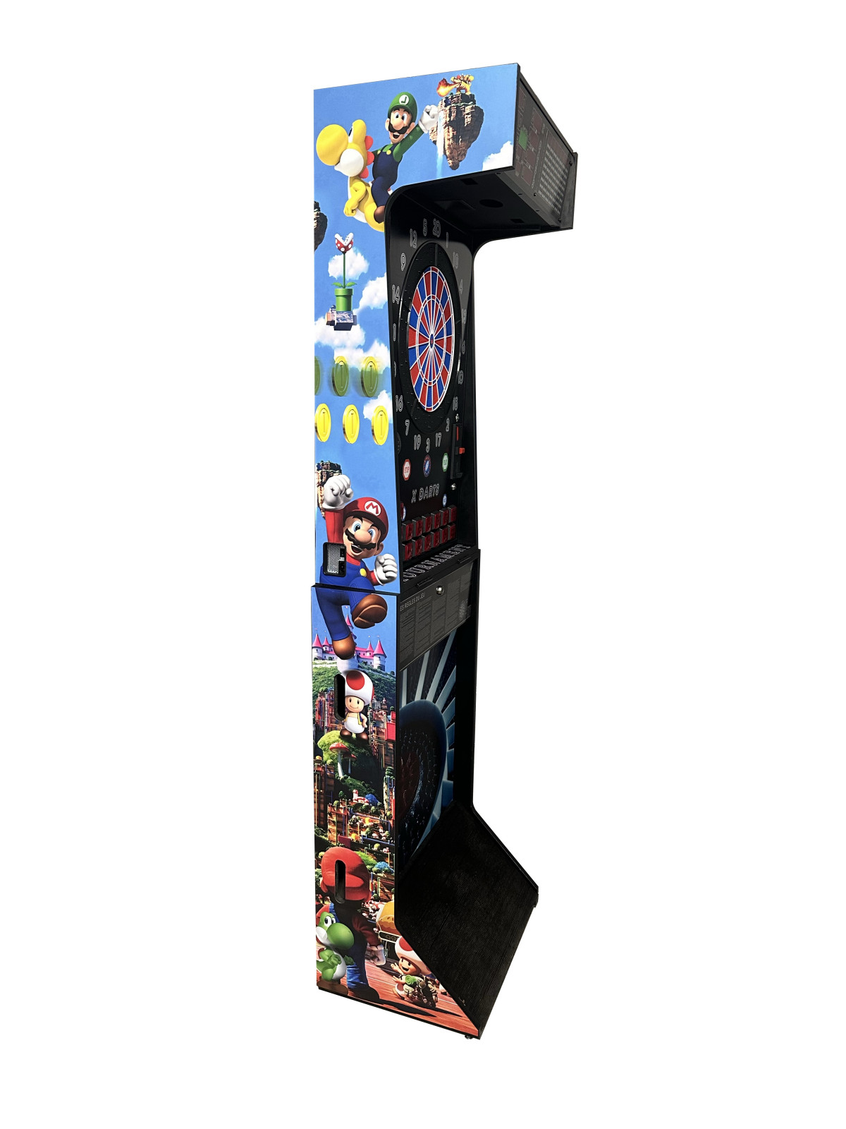 La borne de fléchettes électroniques X-Dart est conçue pour offrir une expérience de jeu conviviale, précise et sécurisée. Son design sobre et moderne, avec une finition noire, s’intègre facilement dans tous types d’environnements, qu’il s’agisse d’un espace privé, d’un bar, d’une salle de jeux ou d’un local associatif.