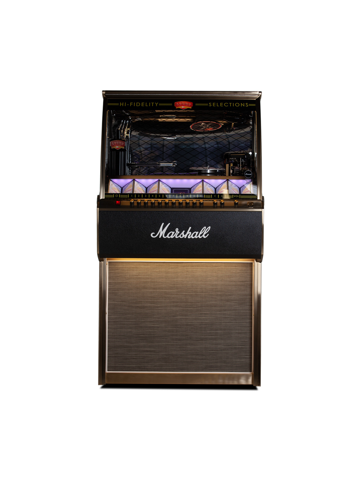 Fabriqué entièrement à la main au Royaume-Uni, le Marshall Rocket LP se distingue par son design inspiré des célèbres amplificateurs Marshall, avec des finitions soignées, des matériaux premium et une identité visuelle forte. Son meuble robuste, pensé comme un véritable objet de collection, s’impose comme une pièce maîtresse dans un salon, une salle de musique, un bar ou un espace lounge à l’ambiance rock et contemporaine.