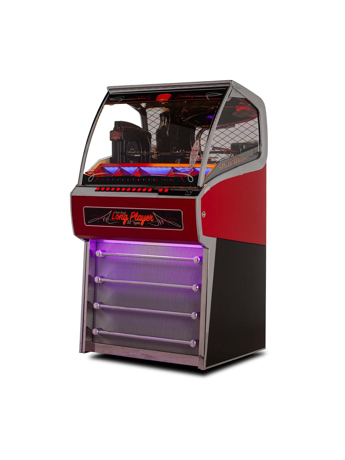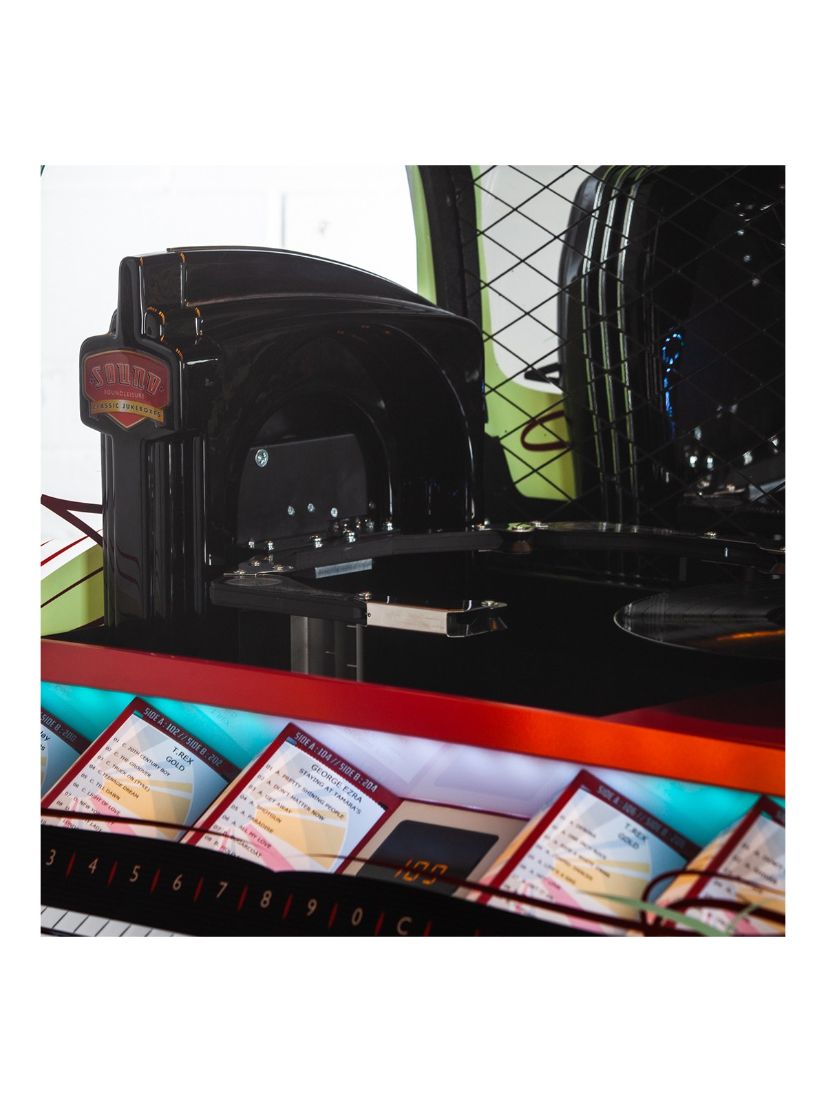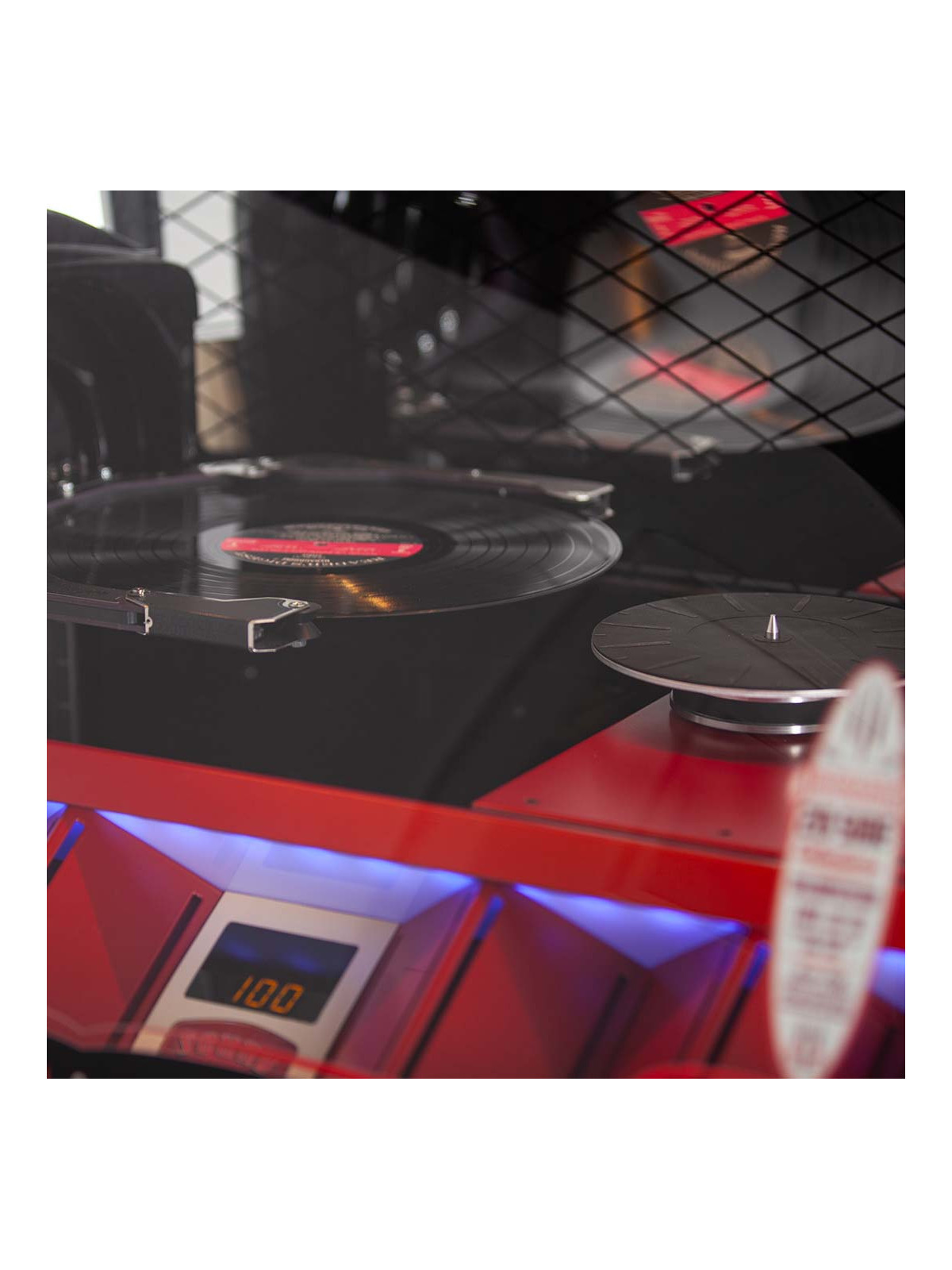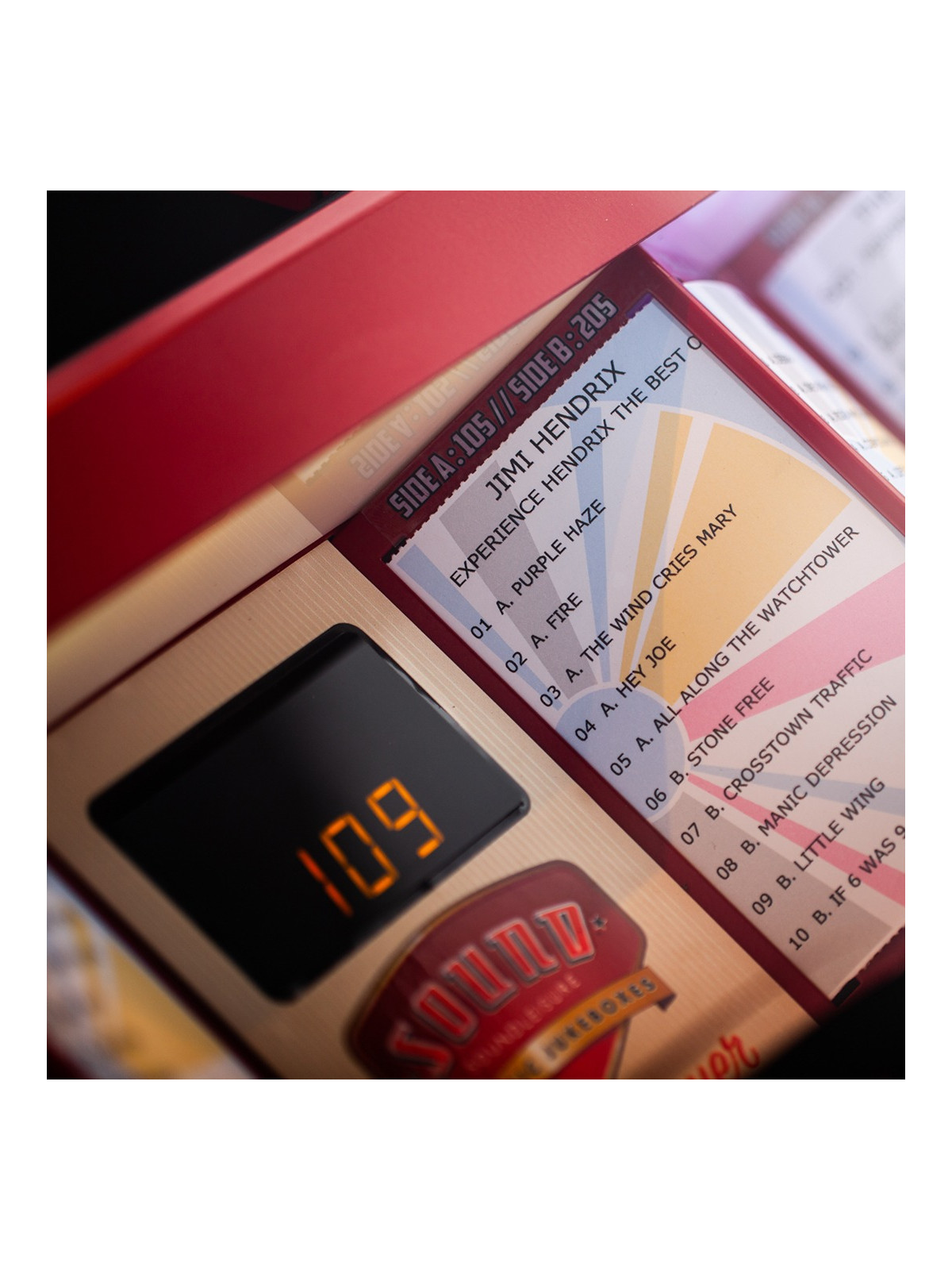 Le jukebox permet de sélectionner facilement les albums et les faces des vinyles, de créer des playlists et de profiter de différents modes de lecture, offrant une expérience d’écoute fluide et conviviale. La connectivité Bluetooth intégrée apporte une flexibilité supplémentaire, permettant de diffuser de la musique depuis un smartphone ou un appareil compatible, sans renoncer au charme du vinyle.