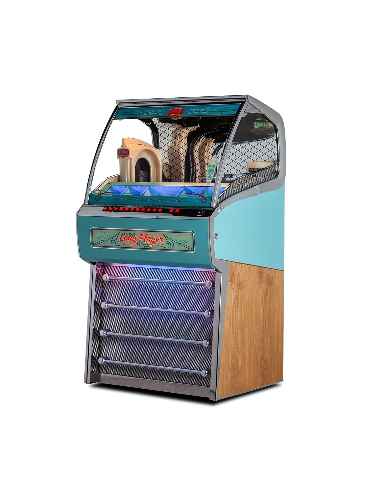 Doté d’un système audio performant avec amplificateur dédié Sound Leisure et haut-parleurs de haute qualité, le Jukebox Anniversary Rocket LP délivre un son puissant, chaleureux et équilibré, fidèle à l’esprit analogique. À la fois objet décoratif, équipement audio haut de gamme et hommage à l’histoire du jukebox, ce modèle anniversaire s’adresse aux passionnés de musique, aux collectionneurs et aux amateurs de design recherchant une pièce unique et emblématique.