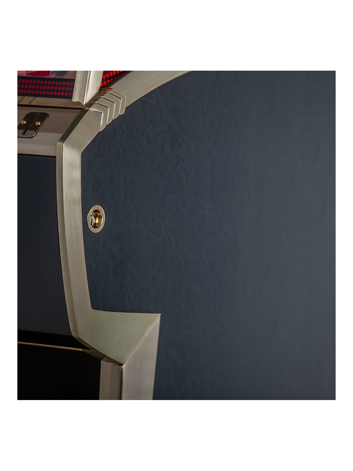 Fabriqué entièrement à la main au Royaume-Uni par Sound Leisure, ce modèle d’exception bénéficie d’un meuble en bois massif aux finitions haut de gamme, enrichi de graphismes et de détails visuels inspirés de l’esthétique iconique de 1968. Son éclairage LED intégré met en valeur ses lignes et renforce son impact visuel, faisant de ce jukebox une véritable pièce de collection.