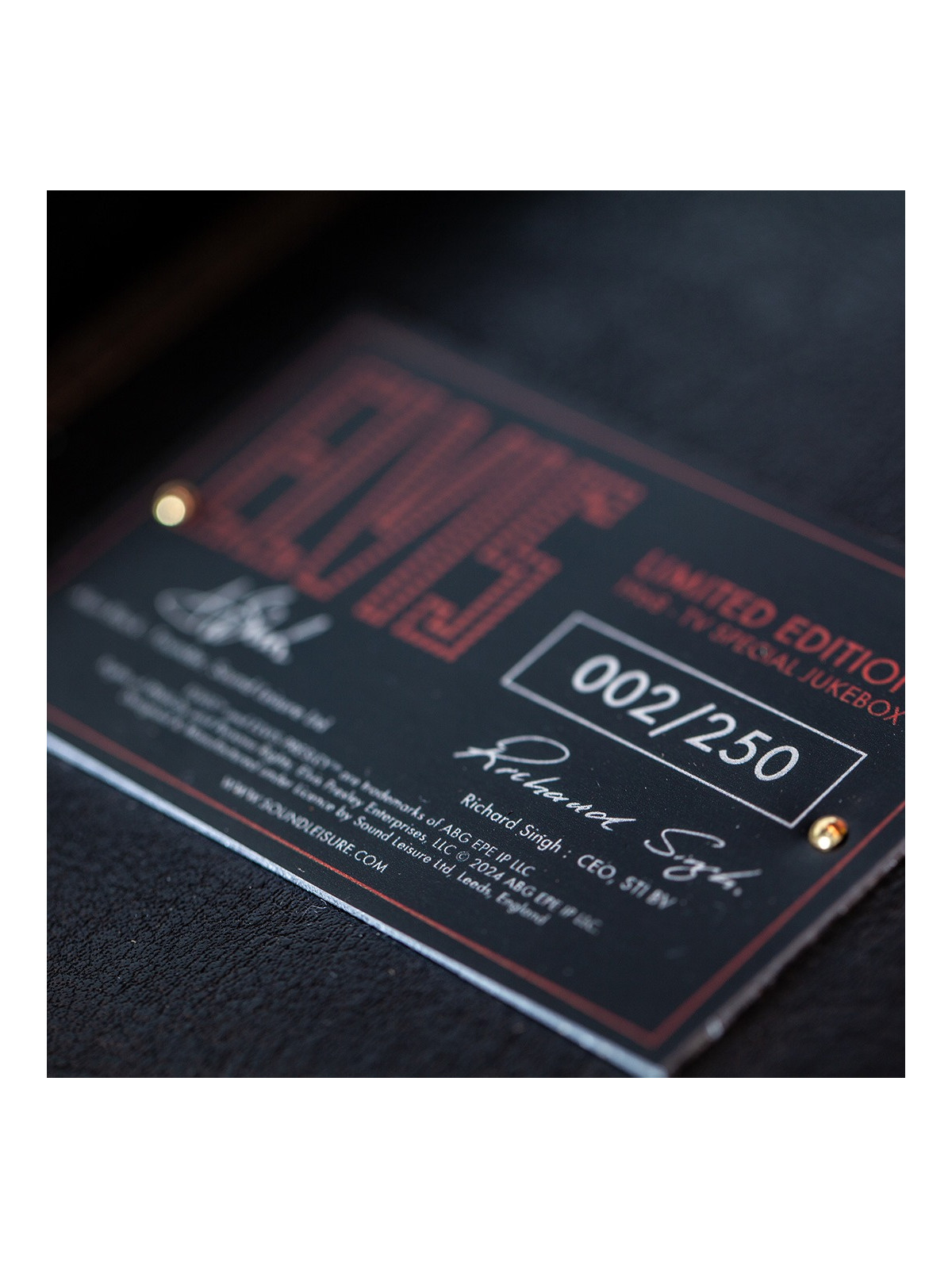 Équipé d’un système audio performant avec amplificateur dédié Sound Leisure et haut-parleurs de haute qualité, ce jukebox délivre un son puissant, clair et équilibré, fidèle à l’énergie brute du rock’n’roll. À la fois objet décoratif emblématique et équipement audio haut de gamme, le Jukebox Elvis Presley CD ’68 Comeback s’adresse aux fans d’Elvis, aux collectionneurs et aux établissements souhaitant proposer une ambiance musicale iconique et chargée d’histoire.