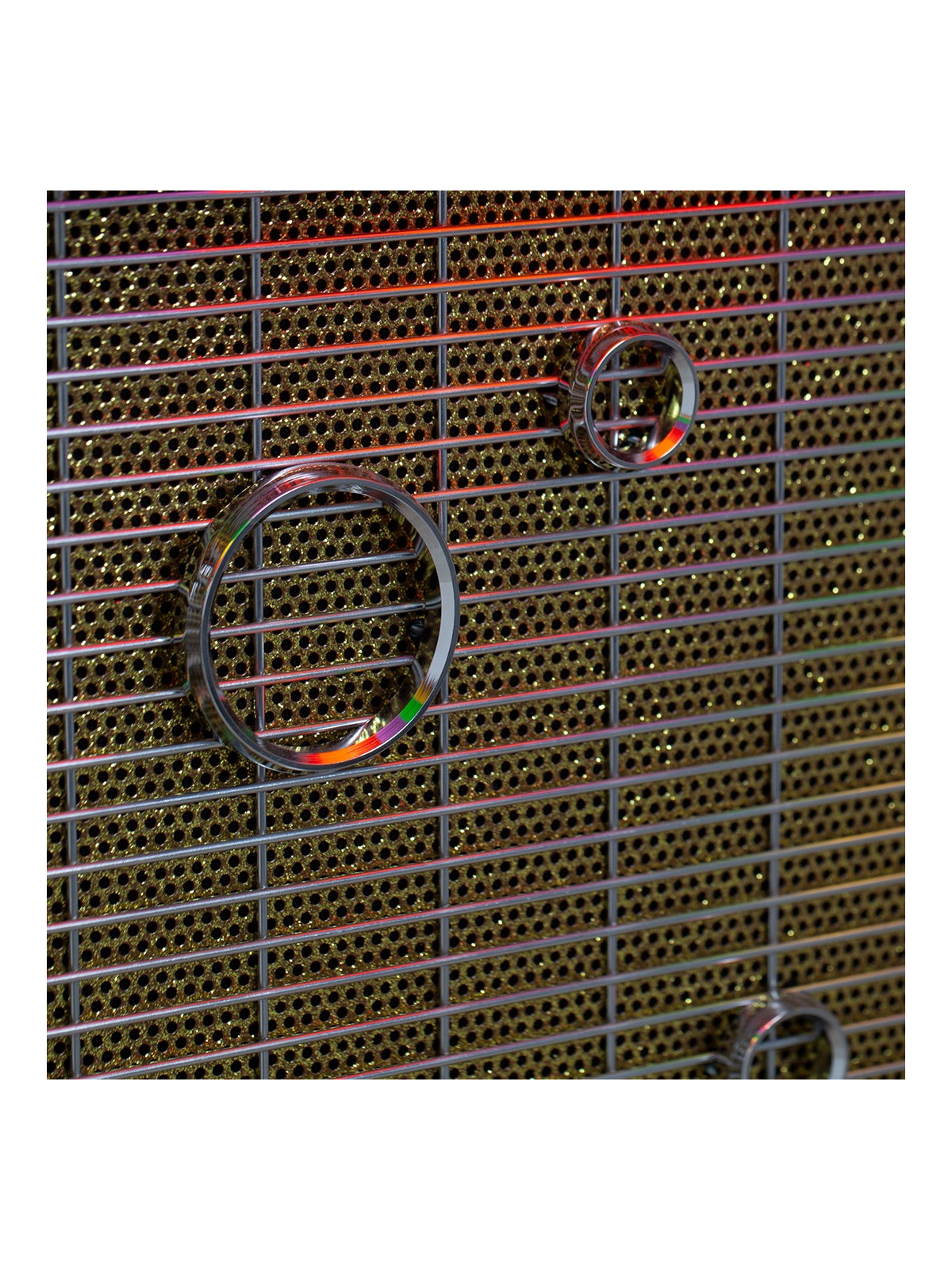 Éléments décoratifs du meuble en aluminium et zinc moulés puis chromés