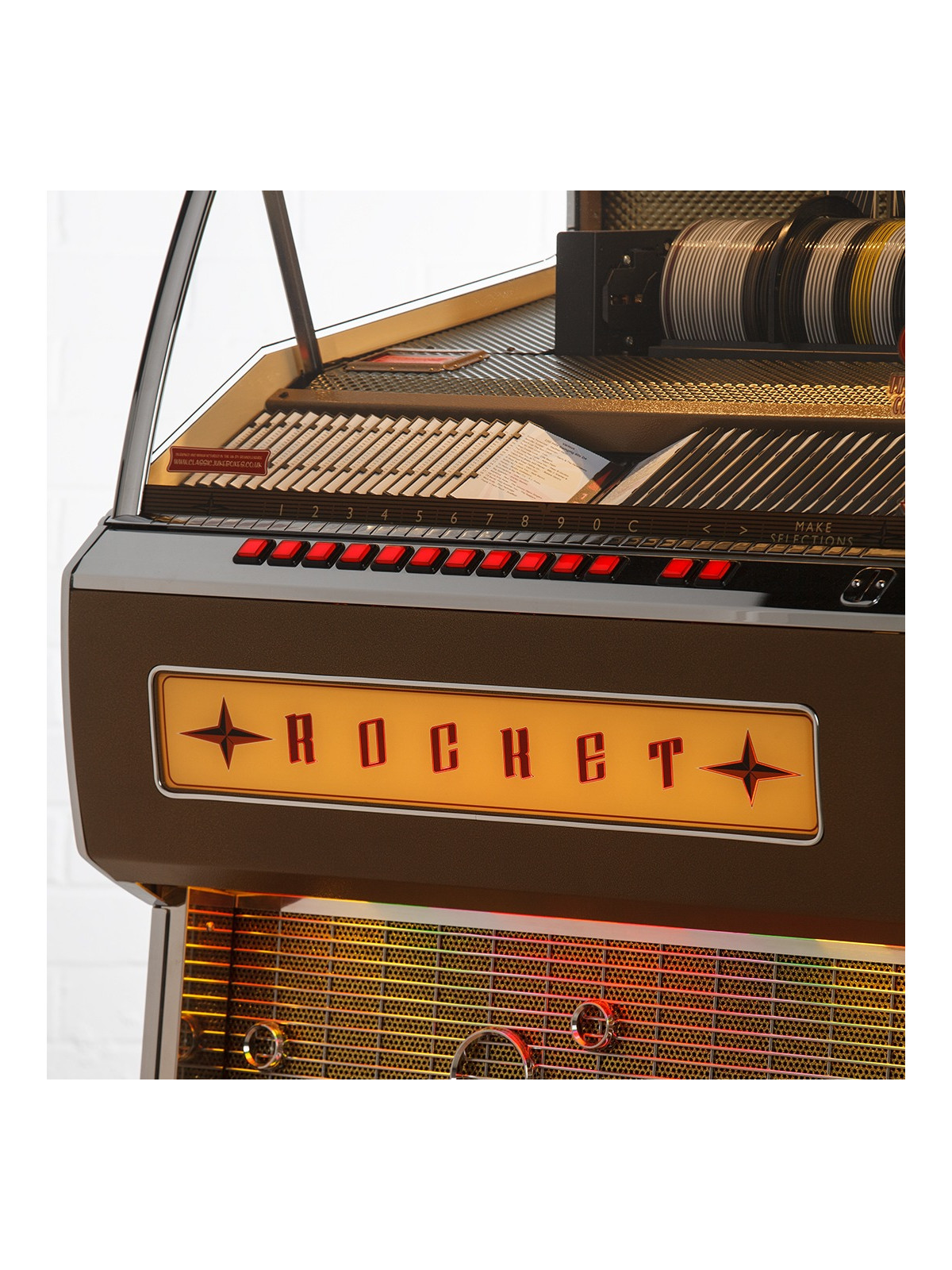 Fabriqué entièrement à la main au Royaume-Uni, le Rocket CD bénéficie d’un meuble en bois massif, de finitions premium et d’éléments décoratifs soigneusement travaillés. Son esthétique iconique, sublimée par un éclairage LED intégré, en fait une véritable pièce maîtresse décorative, idéale pour un salon, une salle de jeux, un bar, un hôtel ou un espace lounge.