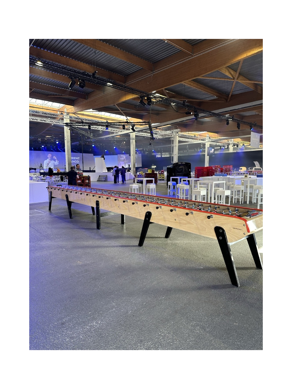 Avec son format XXL impressionnant et sa qualité de fabrication professionnelle, ce baby-foot devient instantanément l’attraction centrale de votre événement. Il est particulièrement adapté aux grandes entreprises, événements institutionnels, animations sportives et manifestations grand public.