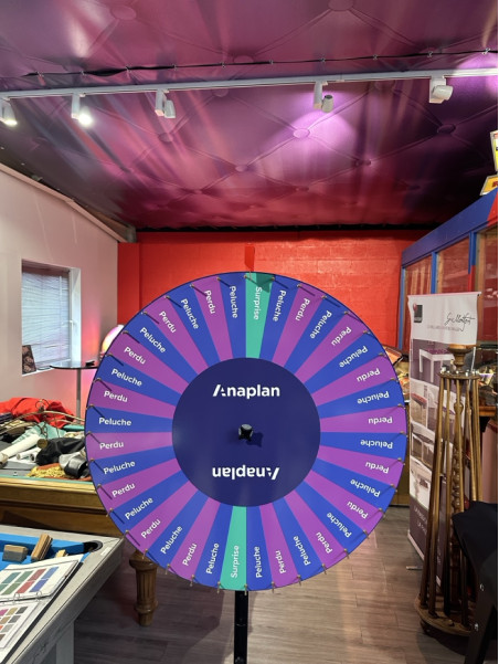 Optez pour la location d’une roue personnalisée de 90 cm à 36 segments à la journée, une animation interactive et sur mesure, idéale pour maximiser la visibilité de votre marque et dynamiser vos événements et opérations marketing.