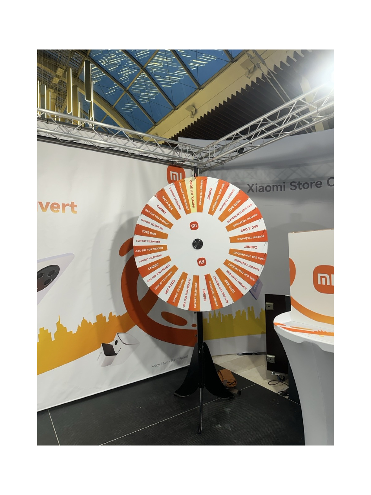 La roue personnalisée 127 cm est une animation événementielle grand format conçue pour offrir une visibilité maximale, même dans des environnements très fréquentés. Grâce à son diamètre XXL, elle devient un véritable point d’attraction sur un stand, un salon ou lors d’une animation grand public.